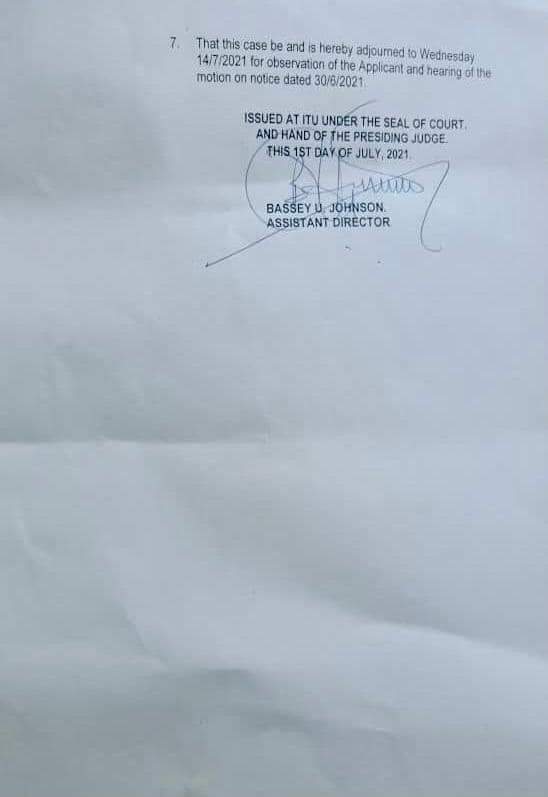 “I had to approach the court as a last resort of ensuring that my client gets fair treatment under the law and thankfully Hon. Justice Ntong F. Ntong of the High Court of Akwa Ibom State, Itu Judicial Division granted our plea”, he further stated.