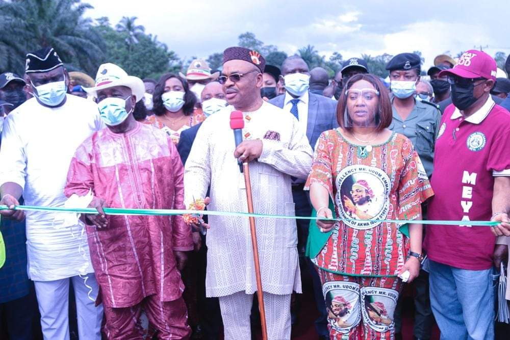 Governor Udom Emmanuel has inaugurated the Second Phase of the Nto Edino / Ekwereazu Road that comes with twin bridges to link some Obot Akara communities and also ease movement from Akwa Ibom State to Abia State.