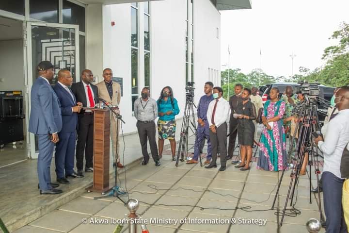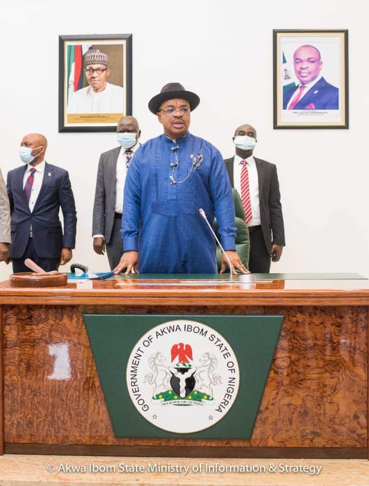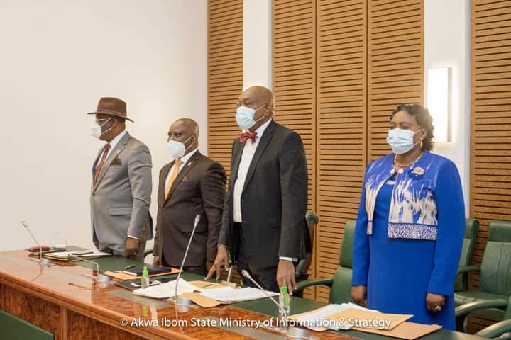 The meeting which was presided over by HE the Governor, Mr. Udom Emmanuel, had in attendance,HE the Deputy Governor, Secretary to the State Government, Chief of Staff, Head of the Civil Service, Honourable Commissioners and Special Adviser. It commenced at 11AM with the rendition of the National and State Anthems; the opening prayer was worded by the Honourable Commissioner for Women Affairs.