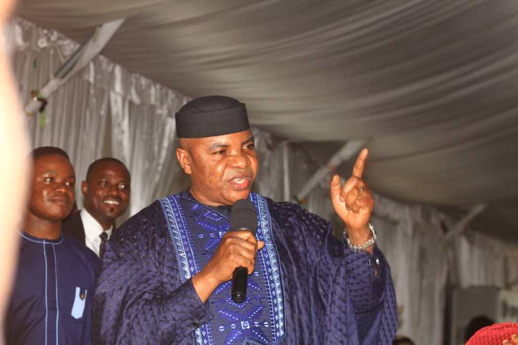 The Member representing Ukanafun/Oruk Anam Federal Constituency at the National Assembly, Rep. Unyime Idem today graced the wedding reception of Blessing Pascal and Ini-odu Udo Kierian, the son of the Leader of Akwa Ibom State House of Assembly, Sir Udo Kierian Akpan as Chairman of the occasion. The reception took place at Emeralds Event Centre, Edet Akpan Avenue, Uyo.