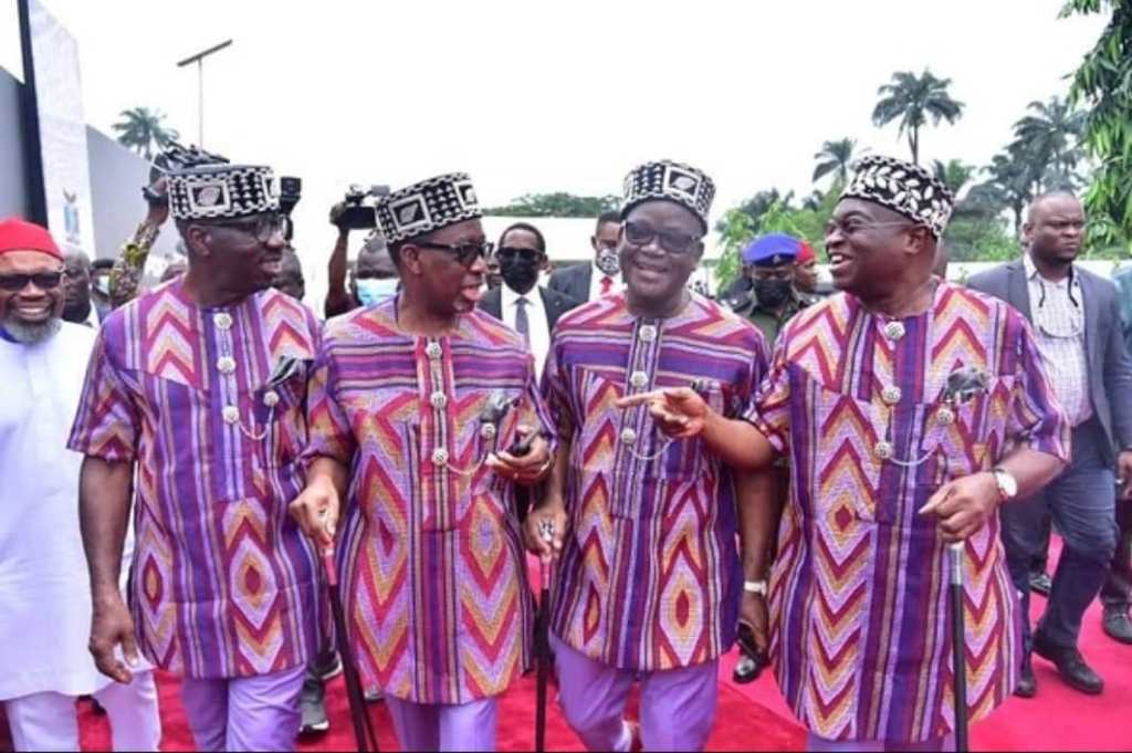 The G5 are now like National Entertainers. I don’t want to use the term Comedians. Every other day, for fear of one or two breaking away in betrayal of the group, they now wear different costumes dancing across State capitals from Enugu, to Markurdi, Port Harcourt to Lagos and the circus show continues