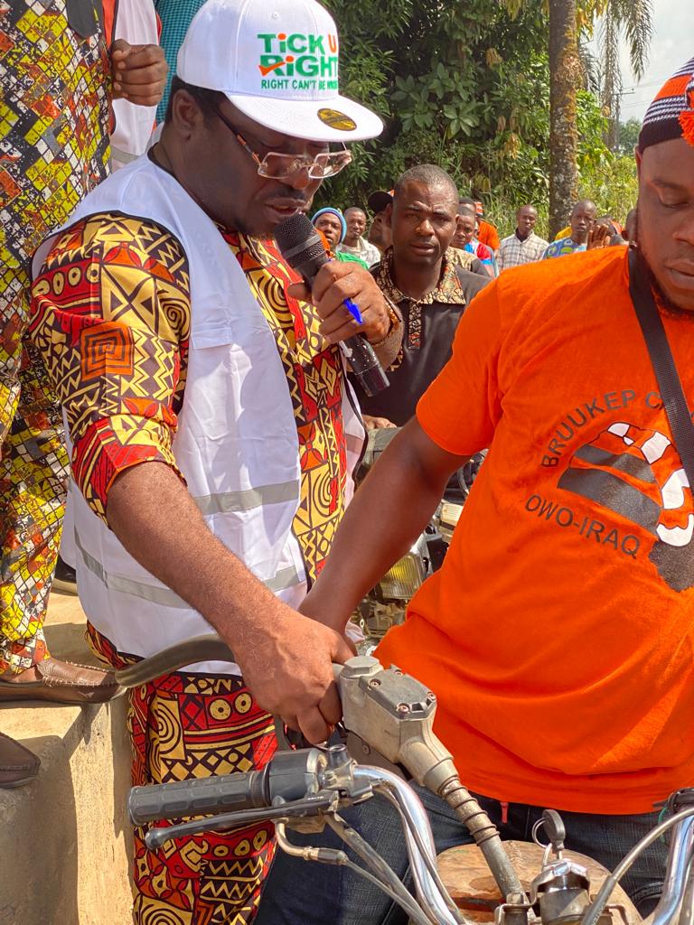 The D.G of TICK “U” RIGHT Organization, Comr. INIBEHE UMAH accompanied by members of this group said the distribution of the free petrol was in appreciation of the grassroots Support for Governor Emmanuel administration and the overwhelming acceptance of Pastor Umo Eno and all the PDP candidates as the state is getting ready for the 2023 general elections.