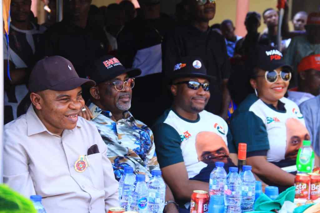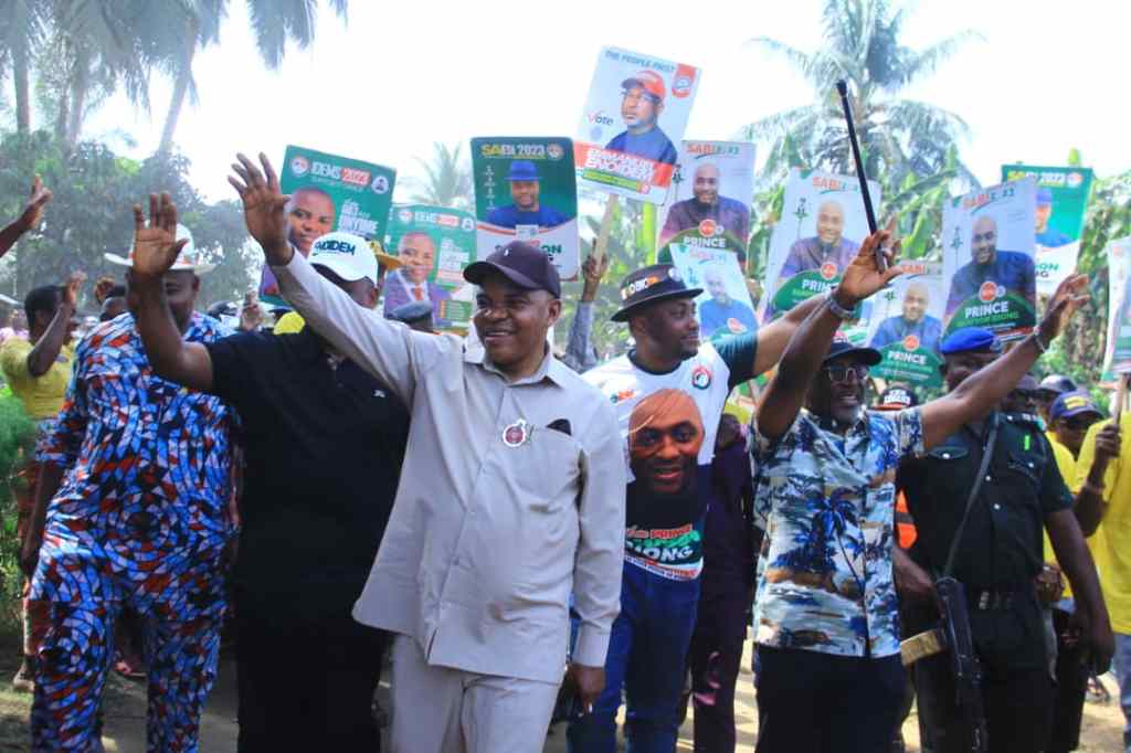Other personalities on the campaign train were the PDP Chairman Ikot Ekpene Senatorial District, Pst Cletus Eshiet, the member representing Abak/Etim Ekpo/Ika Federal Constituency, Rep. Aniekan Umanah, the Leader of the Akwa Ibom State House of Assembly, Rt Hon Sir Udo Kierian Akpan, Chairman of Oruk Anam LGA, Engr. Kingsley Frank, the Chairman of Etim Ekpo LGA, the Honourable Commissioner for Education, Obonganwan Idongesit Etiebet, the PDP Chapter Chairman, Engr Nsikak Titus, the Deputy Director General of Enoidem Campaign Council, Sir Victor Etefia, Chairman AKSEPWMA, Obong Prince Ikim, Chairman of State Technical Schools Board, Hon. Godwin Udom, Deputy Director General of Unyime Idem Campaign Organization, Chief Bassey Essien, other very eminent personalities, the party heirarchy, the traditional and religious leaders, the youth and women groups as well as students and female organisations.