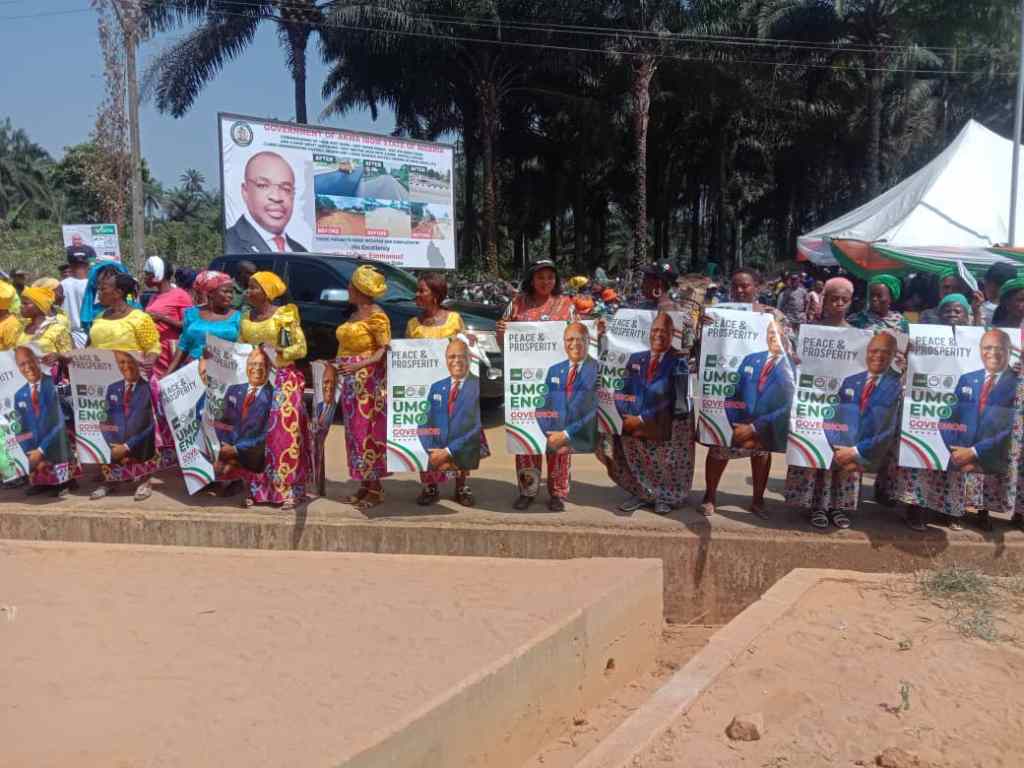 In their seperate remarks, the Leader, Akwa Ibom State House of Assembly, Rt. Hon. Sir Udo Kierian Akpan, Rep Unyime Idem, commissioner for Education, Mrs Idongesit Etiebet, Oruk Anam council Chairman, Hon. Kingsley Frank, PDP candidate for Oruk Anam State Constituency, Prince Sampson Idiong and the paramount ruler, HRM, Akuku J. J. Obosi amongst others, were full of praises to the Governor for his developmental strides in Oruk Anam.