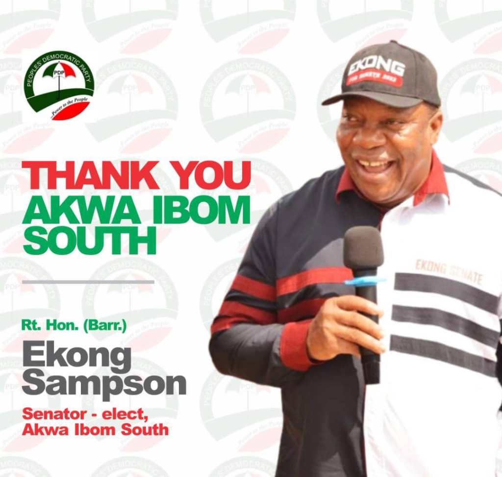 I do not know how well to thank the Almighty God and the people of Akwa Ibom South for this emphatic vote of confidence. I thank God and my great people – Oro, Ibibio, Ekid, Obolo – for joining hands firmly to send me to the Nigerian Senate.