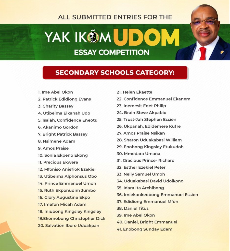 Here is the full list of participants at the Essay competition organised to celebrate Governor Udom Emmanuel’s 8 years of superlative performance.