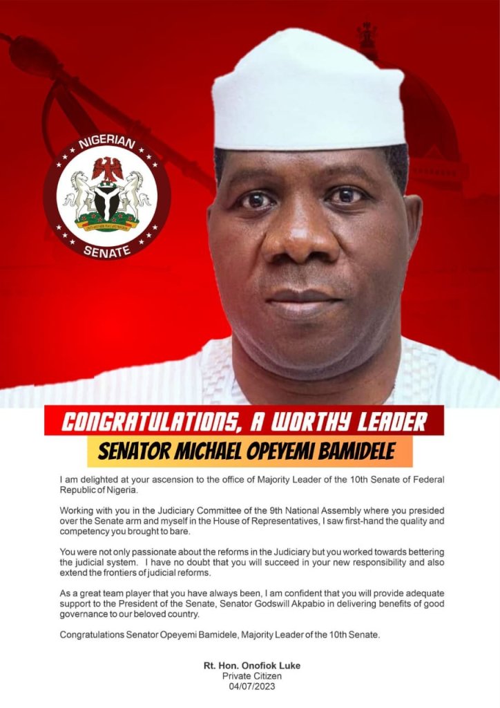 Congratulations Senator Michael Opeyemi Bamidele, Majority Leader of the 10th Senate.