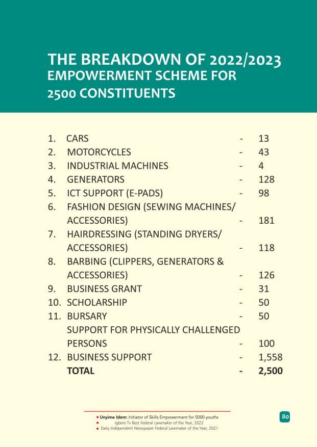 Recall that during his campaign, Rep. Idem had pledged to empower 5000 constituents, out of which 2500 were trained and empowered in 2020 and 2021.